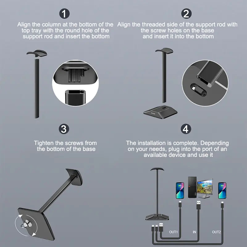 Designed for superior convenience, the RGB Gaming Headphone Stand features two outreach jacks — one USB 2.0 and one Type-C 2.0 interface — allowing you to connect various devices such as USB drives or charging cables. Additionally, the stand includes a computer link interface to maximize control over your gaming audio.